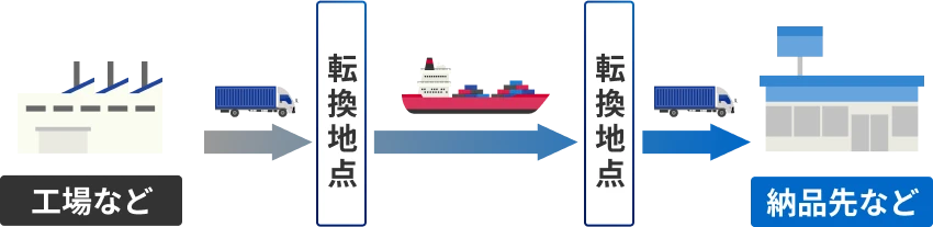 通常の陸送であれば工場→納品先までの長距離をドライバーがトラックを運転して移動することで荷物を輸送しています。